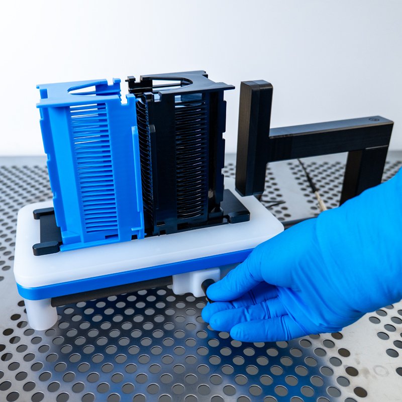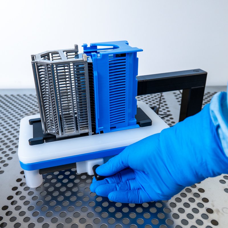 The WHS-T3 series is a precision manual horizontal bulk wafer slide transfer system designed to safely move wafers between two SEMI-compliant cassettes.